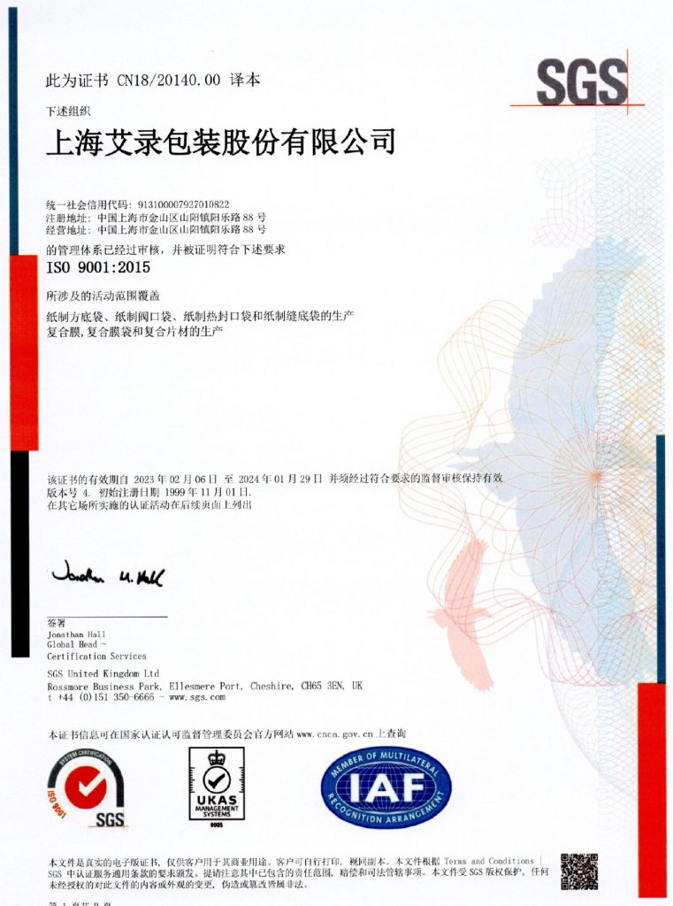 上海艾錄包裝股份有限公司(證券簡(jiǎn)稱:上海艾錄 證券代碼:301062)成立于2006年,主要從事工業(yè)用紙包裝、塑料包裝及智能包裝系統(tǒng)的研發(fā)、設(shè)計(jì)、生產(chǎn)、銷售以及服務(wù)。經(jīng)過(guò)多年的持續(xù)發(fā)展,公司已由國(guó)內(nèi)領(lǐng)先的工業(yè)用紙包裝公司,成長(zhǎng)為一家工業(yè)與消費(fèi)包裝產(chǎn)品皆備的軟體包裝一體化解決方案提供商,并通過(guò)智能化、柔性化、定制化的生產(chǎn)能力,為妙可藍(lán)多、蒙牛、光明、雀巢、菲仕蘭、 陶氏、巴斯夫、沈陽(yáng)化工、佰利聯(lián)、德高、立邦、東方雨虹、美巢等國(guó)內(nèi)外知名工業(yè)及消費(fèi)類企業(yè)客戶提供包裝解決方案所需的相關(guān)產(chǎn)品。